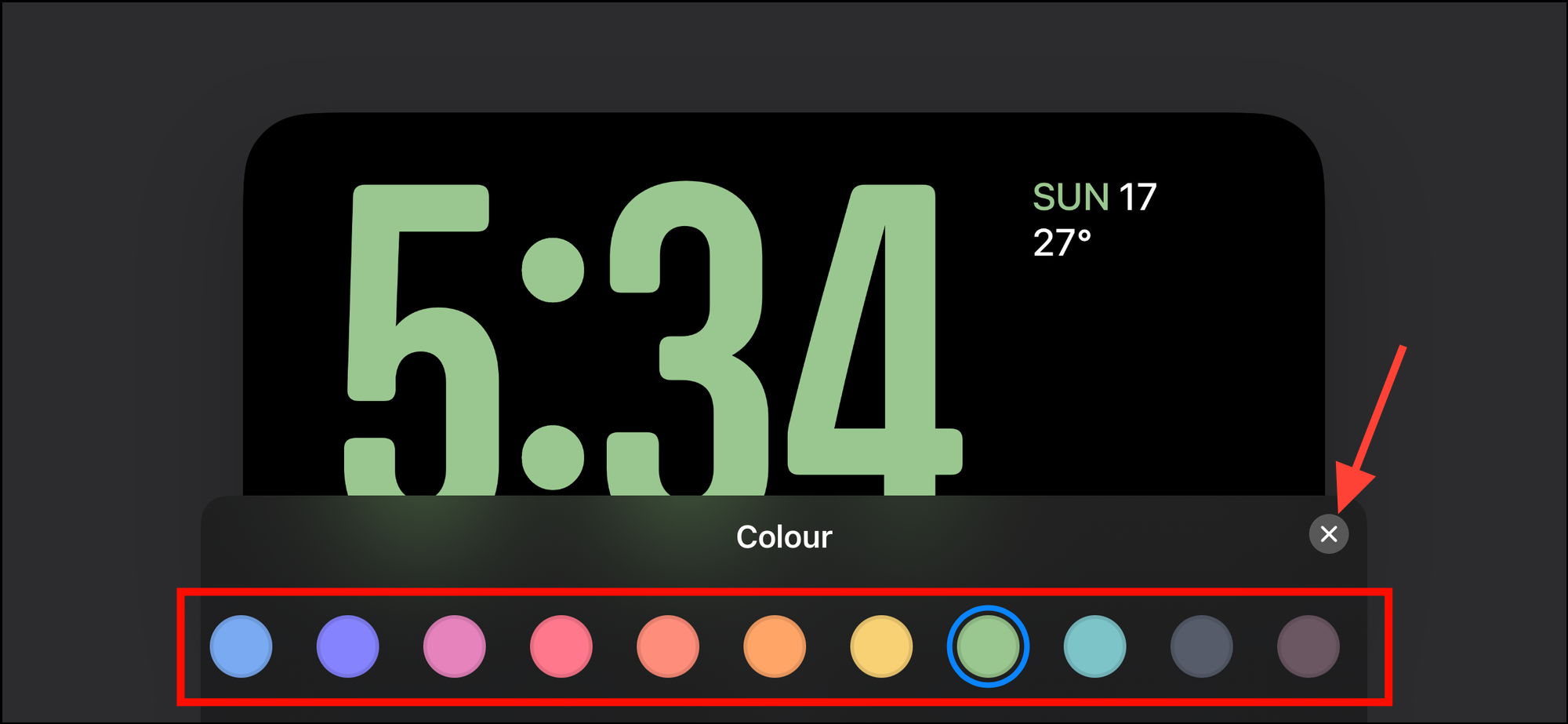 Then, select a color from the available options to your preference and close the menu by tapping the cross icon at the right corner of the color selection menu.