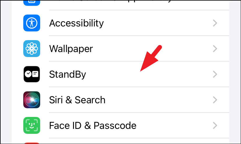 Next, find the 'StandBy' option and select it to continue.