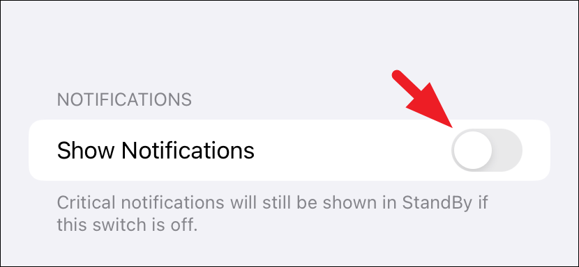 StandBy comes with notifications enabled by default. However, if you wish to disable them, you can do so by deactivating the 'Show notifications' toggle. It's important to understand that, regardless of this setting, fundamental alerts encompassing health, battery status, and crucial weather updates will persist. This feature ensures that you always stay informed about vital information.