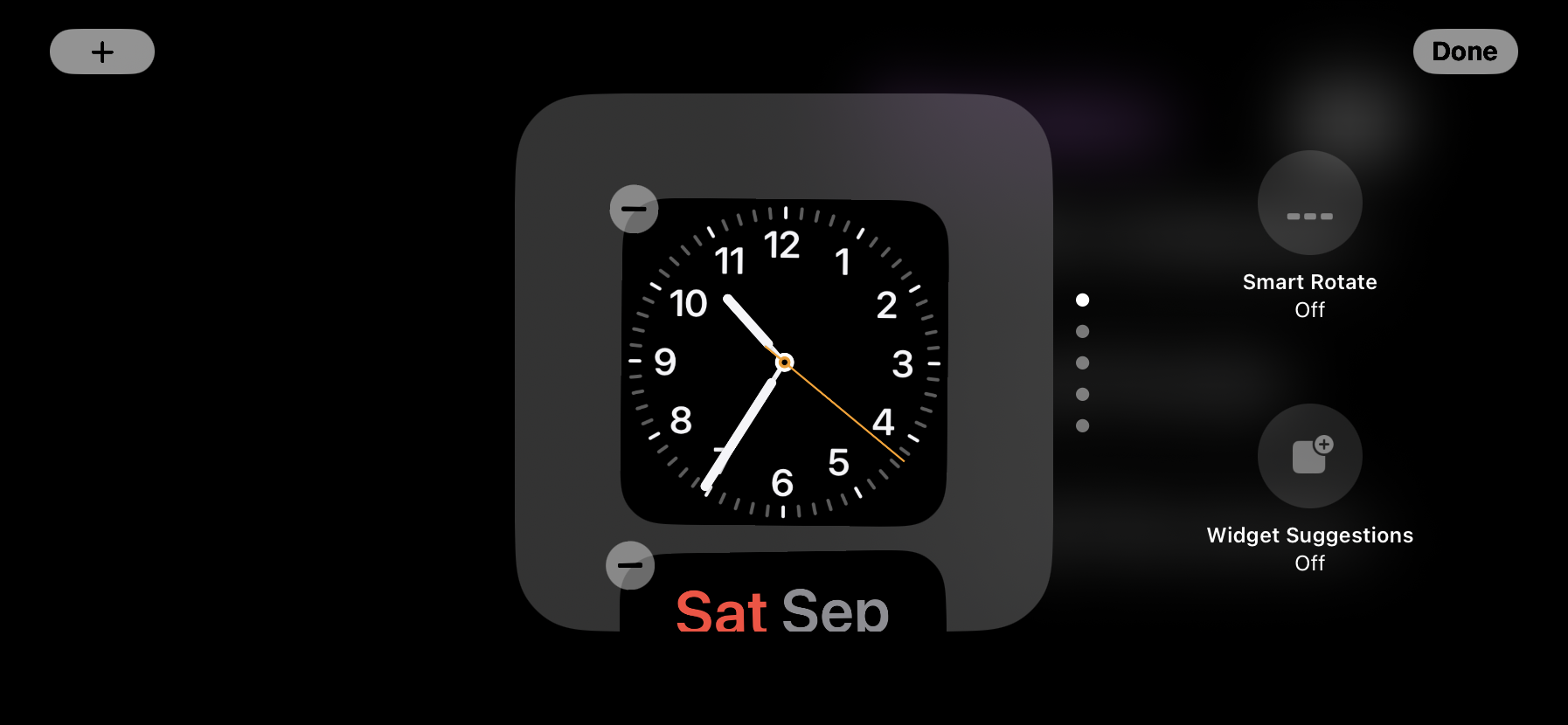 To edit the Clock layout, tap and hold on the screen while the Clock StandBy screen is active, and you'll enter the customizations screen.