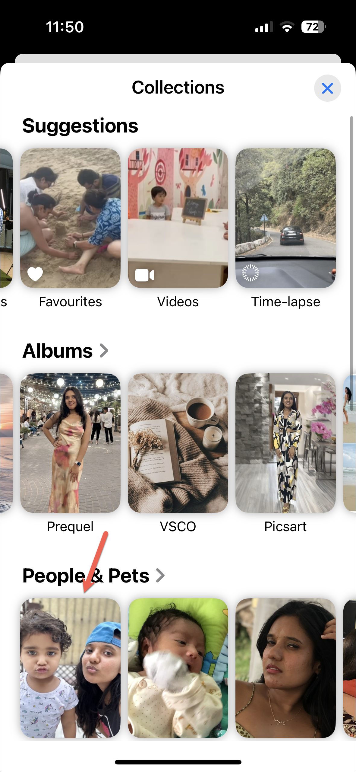 - To add any other album or collection, scroll down and tap on 'Any Collection or Album' and choose it from the Collections menu that opens.
