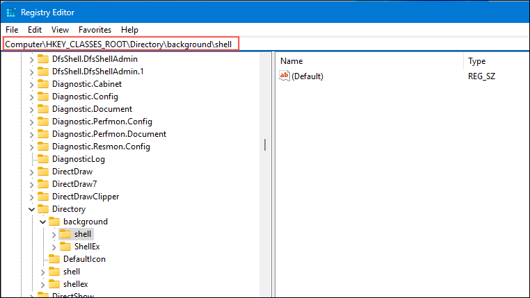 HKEY_CLASSES_ROOT\Directory\Background\shell.