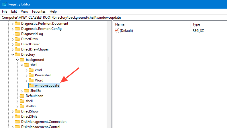 - Select the 'windowsupdate' key, right-click on the 'Default' string on the right side, and click on 'Modify'.