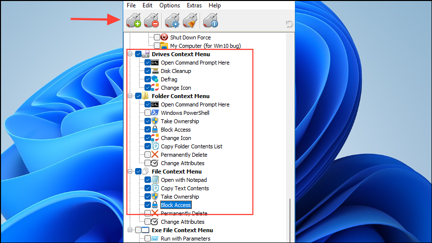 - Now, you can simply click on the checkboxes for the items you want to add to the context menu.