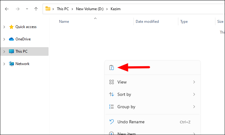- Right-click on an empty space within the destination folder.