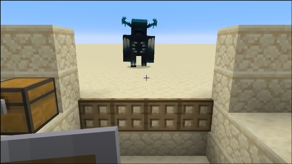 Step 2: Spawn the Wither and immediately break contact. Its activity will trigger a Warden; both mobs typically focus each other fast in tight spaces.
