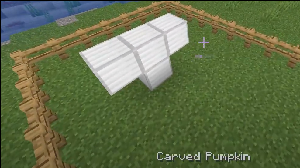 Step 1: Bring iron blocks and carved pumpkins to the city. Build a flat summoning area so golems don’t clip on uneven terrain.