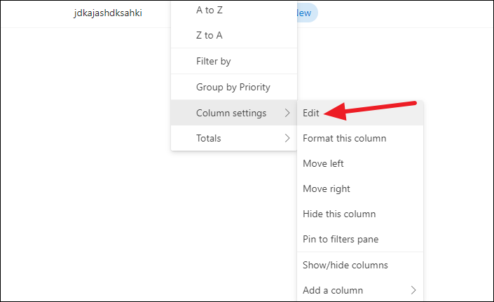 The pane to edit the column will open on the right side of the screen. Click the ‘Edit’ button at the bottom of the pane.
