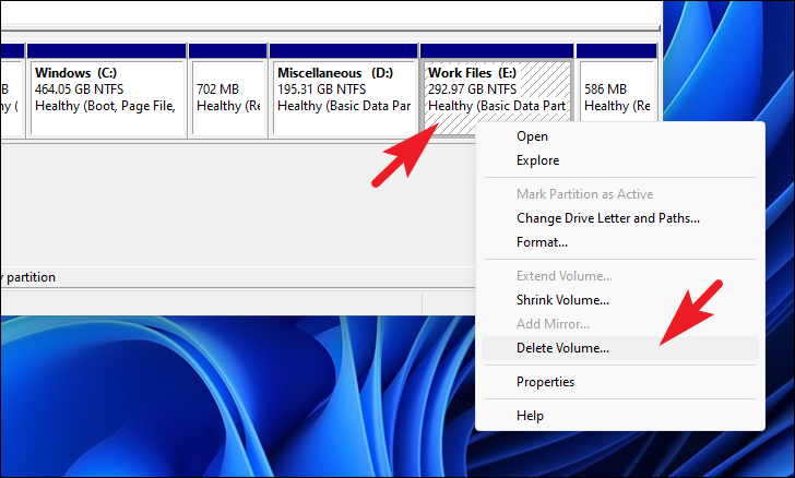 Step 2: In the Disk Management window, locate the partition you want to delete. Right-click on the partition and choose 'Delete Volume' from the context menu. Be sure to back up any important data from this partition before proceeding, as this action will erase all data on it.