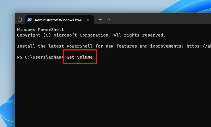 Step 3: In the PowerShell window, type Get-Volume and press Enter to list all the volumes on your system.