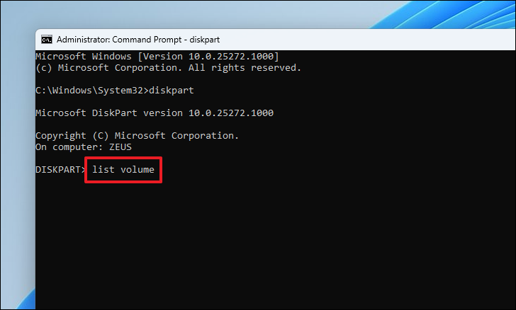 Step 4: Next, type list volume and press Enter to display all the volumes on your system.