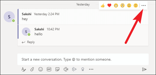 Go to the post you want to delete and hover over it. A reaction menu with emojis will appear. Click on the ‘More options’ icon (three dots).