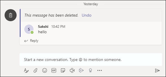 It will delete the post, whether it was a message, file, poll, or anything else. A message will appear in its place: “This message has been deleted,” so everyone will know that you deleted something. You can even ‘Undo’ it if you deleted the wrong post by mistake.