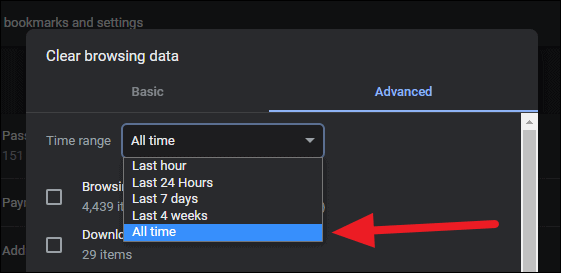 Step 3: Click the dropdown menu next to Time range and select All time to ensure all saved passwords are included.