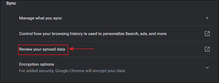 Step 4: Click on Review your synced data to open your Chrome sync settings in a new tab.