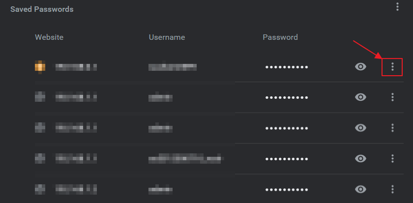 Step 2: You will see a list of all saved login credentials. Locate the password you wish to delete and click the three vertical dots icon next to it.