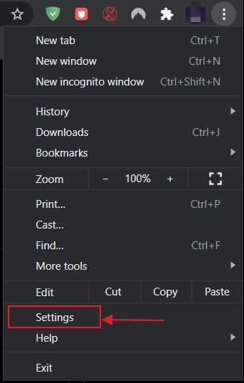 Step 2: From the dropdown menu, select Settings at the bottom of the list.