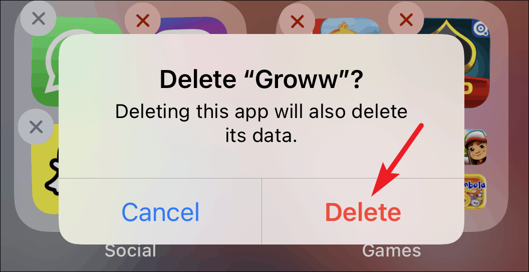A confirmation message will appear on the screen. Tap the ‘Delete’ button to confirm and delete the app.