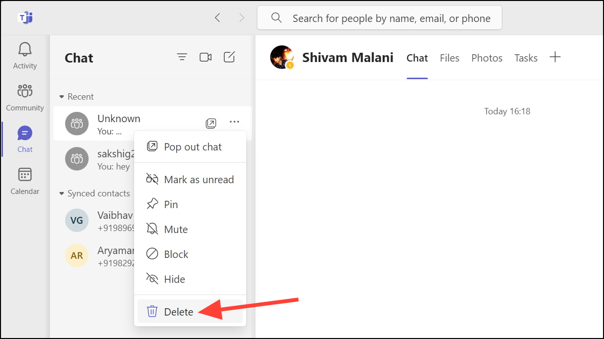 Step 7: Be aware that your organization's administrators may have policies that restrict the ability to delete chats. If you find that you cannot delete a chat, it might be due to these settings.