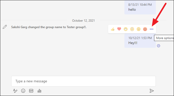 Then, open the conversation where you want to delete the message from the list of chat threads. Go to the message you want to delete and hover on it. Few options would appear. Click ‘More options’ icon (three-dot menu).