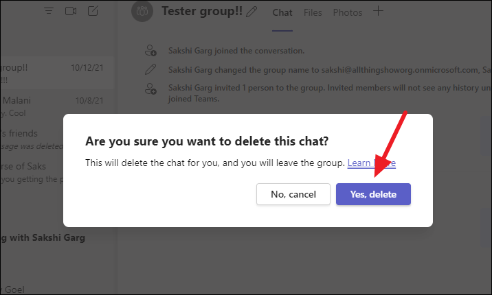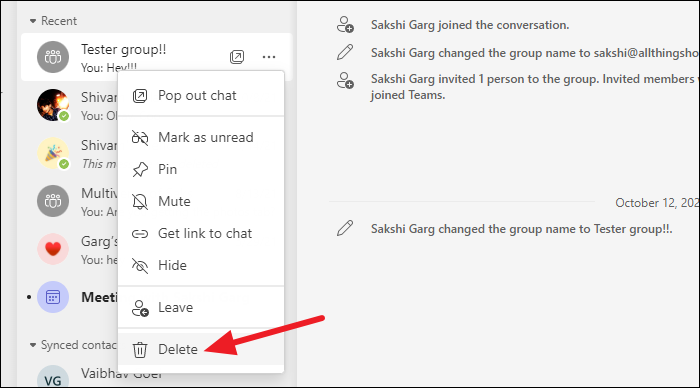 Whether you’re deleting a one-on-one, group, or meeting chat, any files, links, or messages you shared in the chat will remain accessible for others. If you don’t want them to be able to access it anymore, you’ll have to individually delete those messages before deleting the entire chat.