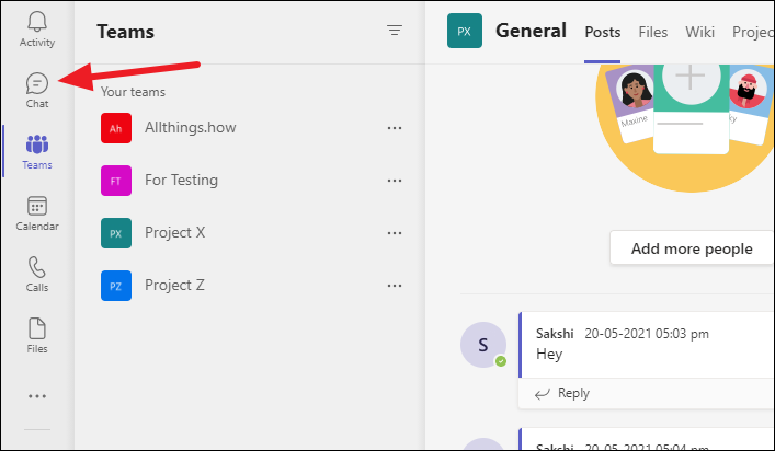 Go to the ‘Chat’ tab from the navigation pane on the left.