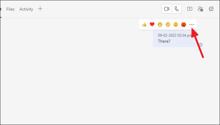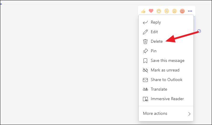 Hover over the message you want to delete. Few options with a string of emojis would appear on the right. Click the ‘More options’ icon (three-dot menu).