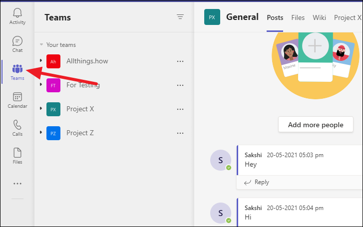 Go to ‘Teams’ from the navigation pane on the left. Then, open the channel in the team where you want to delete the message.