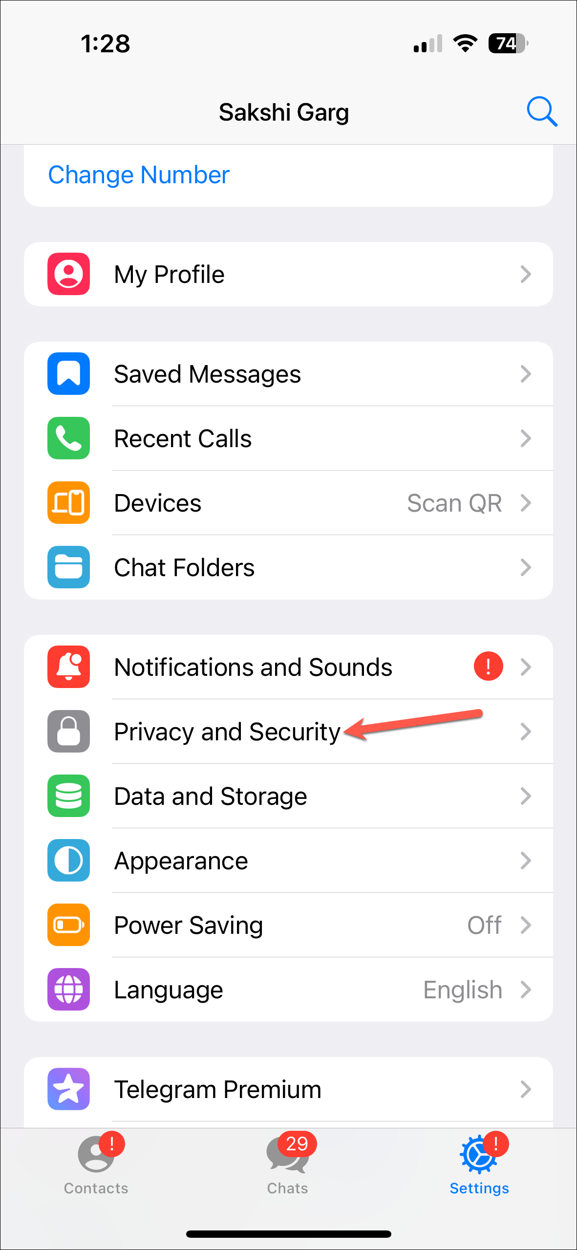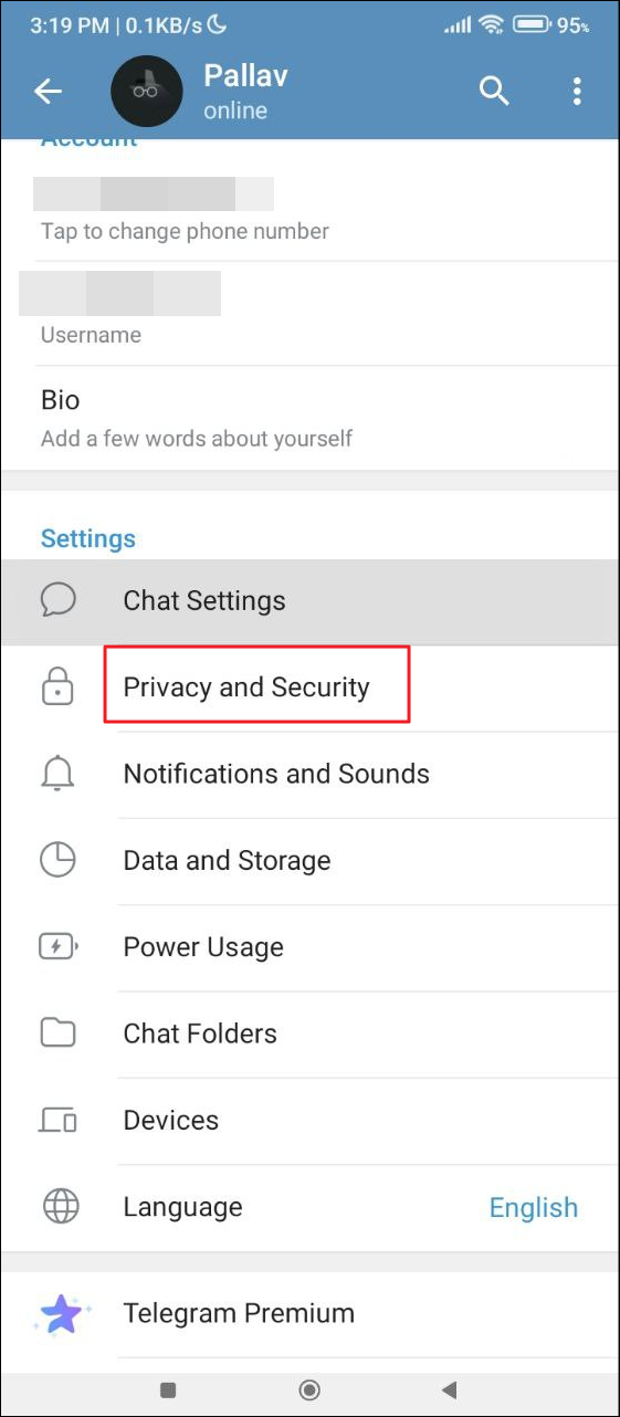 - Open Settings from the bottom right and then go to the 'Privacy and Security' page.