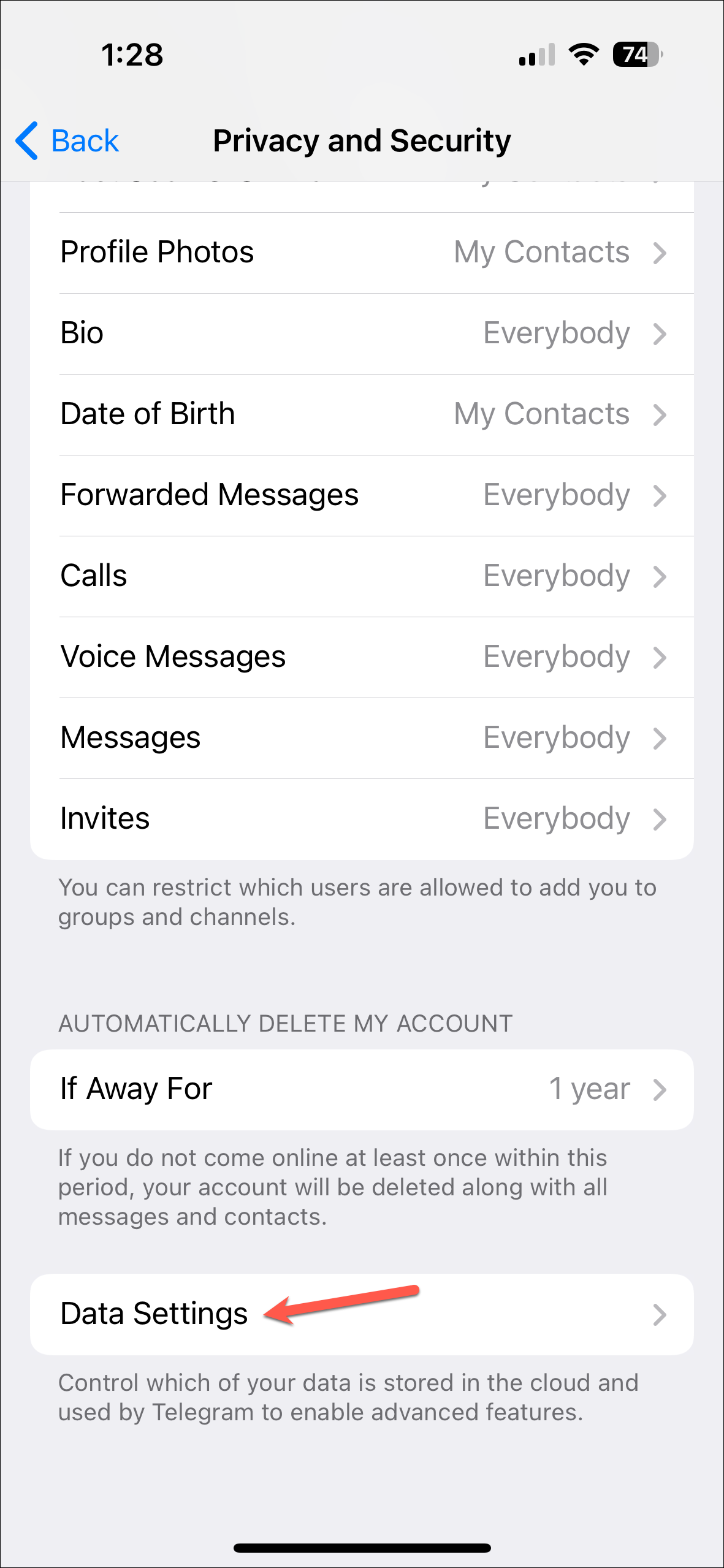 - Scroll down and go to 'Data Settings'.