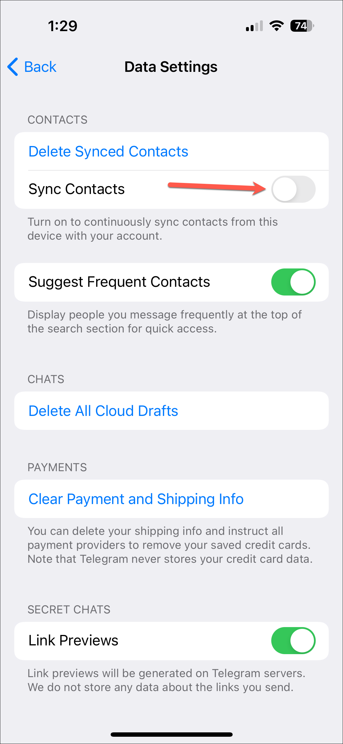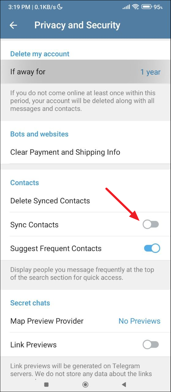 Disable contact syncing in Telegram