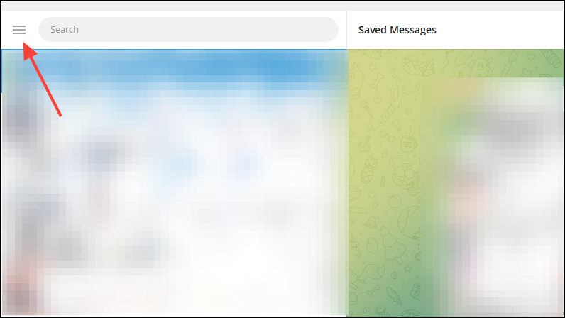 - Similar to the Android app, click on the hamburger menu at the top left of the Telegram desktop app.