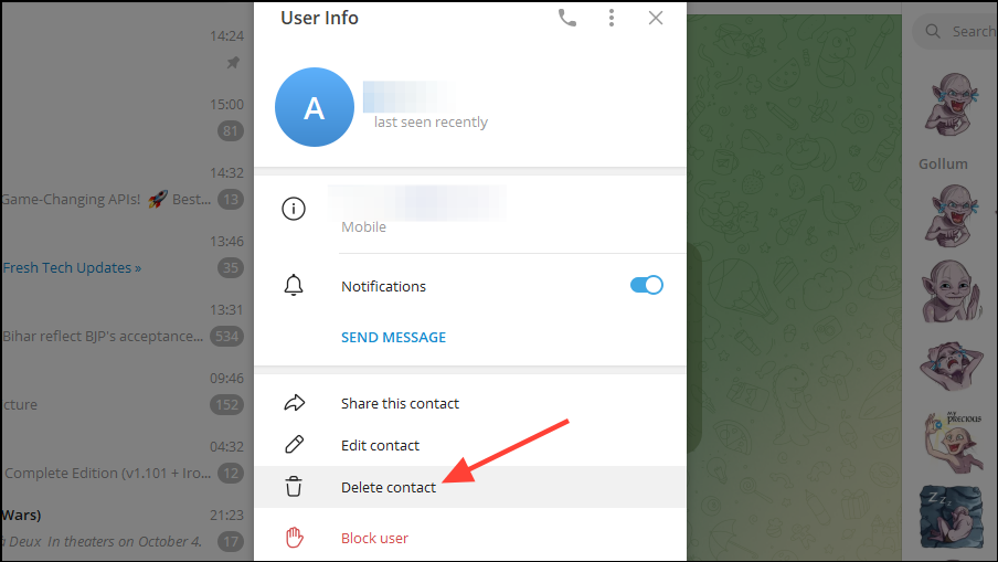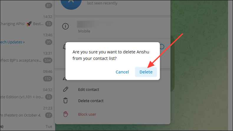 - When using the Telegram desktop app, you can still delete contacts but can only do so one at a time.