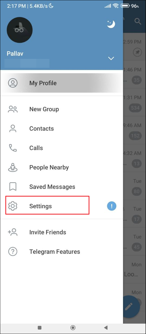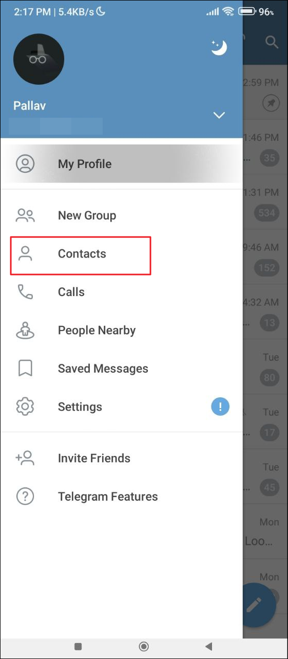 - Open Telegram on your Android device and then tap on the hamburger menu that appears as three horizontal lines on the top left.