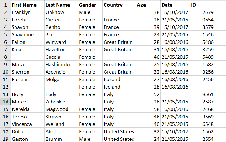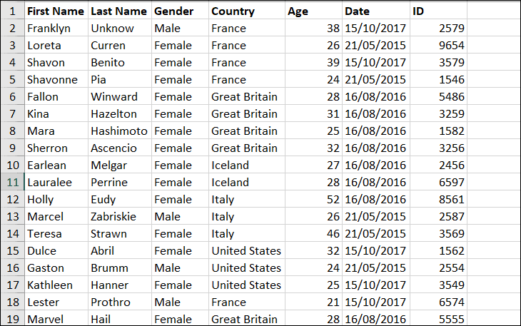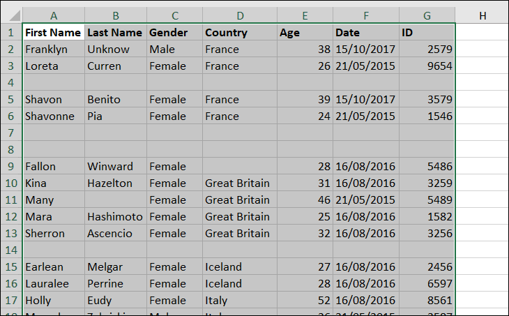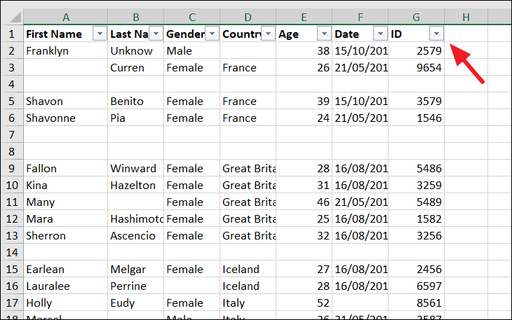 Step 6: Remove the filters by clicking on the Filter button in the Data tab again.