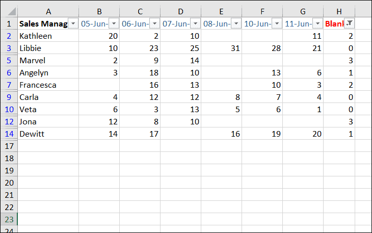 Step 4: Apply a filter to the Blanks column by selecting the dataset and clicking on Filter in the Data tab.