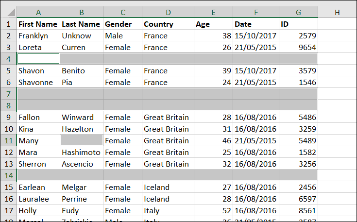 For smaller datasets with only a few blank rows, manual deletion might be the simplest approach.