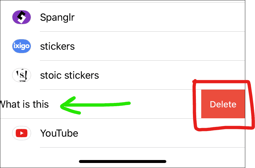 Step 3: In the iMessage apps list, scroll to locate the app you wish to delete. Once you find it, swipe left on the app's name to reveal the Delete option. Tap on Delete to remove the app from your iMessage app drawer.