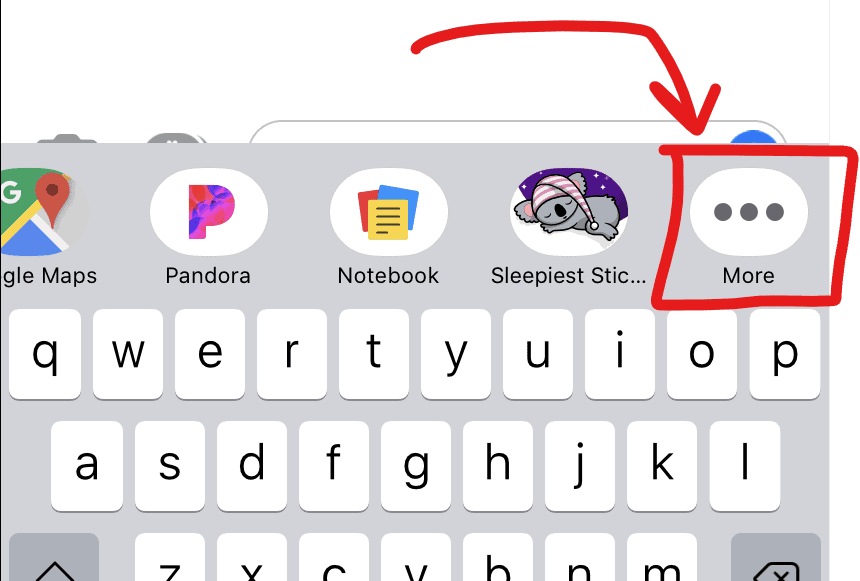 Step 2: Within the conversation view, look for the app icons bar located above the keyboard. Swipe left across this bar to scroll through the available apps. Continue swiping until you reach the end of the bar, where you'll find the three-dot "More" icon. Tap on this icon to access the list of all your installed iMessage apps.