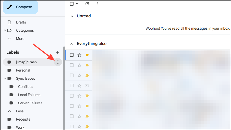 - In case you do not want to delete a label but have no use for it currently, you can choose to hide it by clicking on the three dots next to it and choosing the 'hide' option.