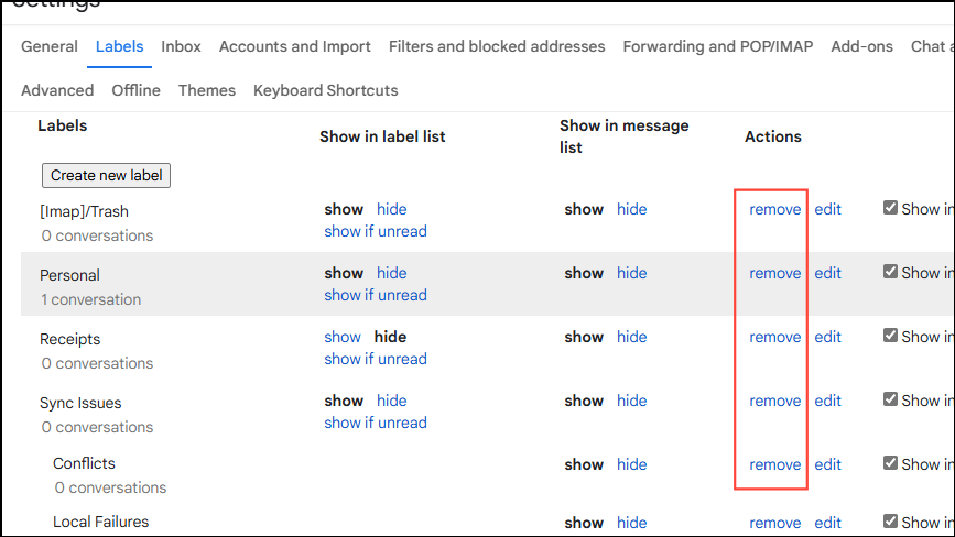 - Now you can click on the 'Remove' option next to all the labels you want to remove.