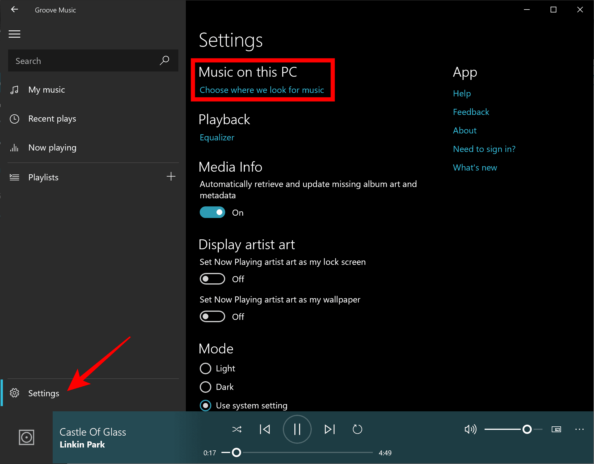 To do this, go to Groove Music Settings, which is at the bottom left portion of the window. Click on “Music on this PC” button at the top of the screen. From here, locate and add your music folder to Groove Music. A great feature of Groove is that you can link multiple folders from multiple locations. This means that all the music on your PC can be viewed in one place.