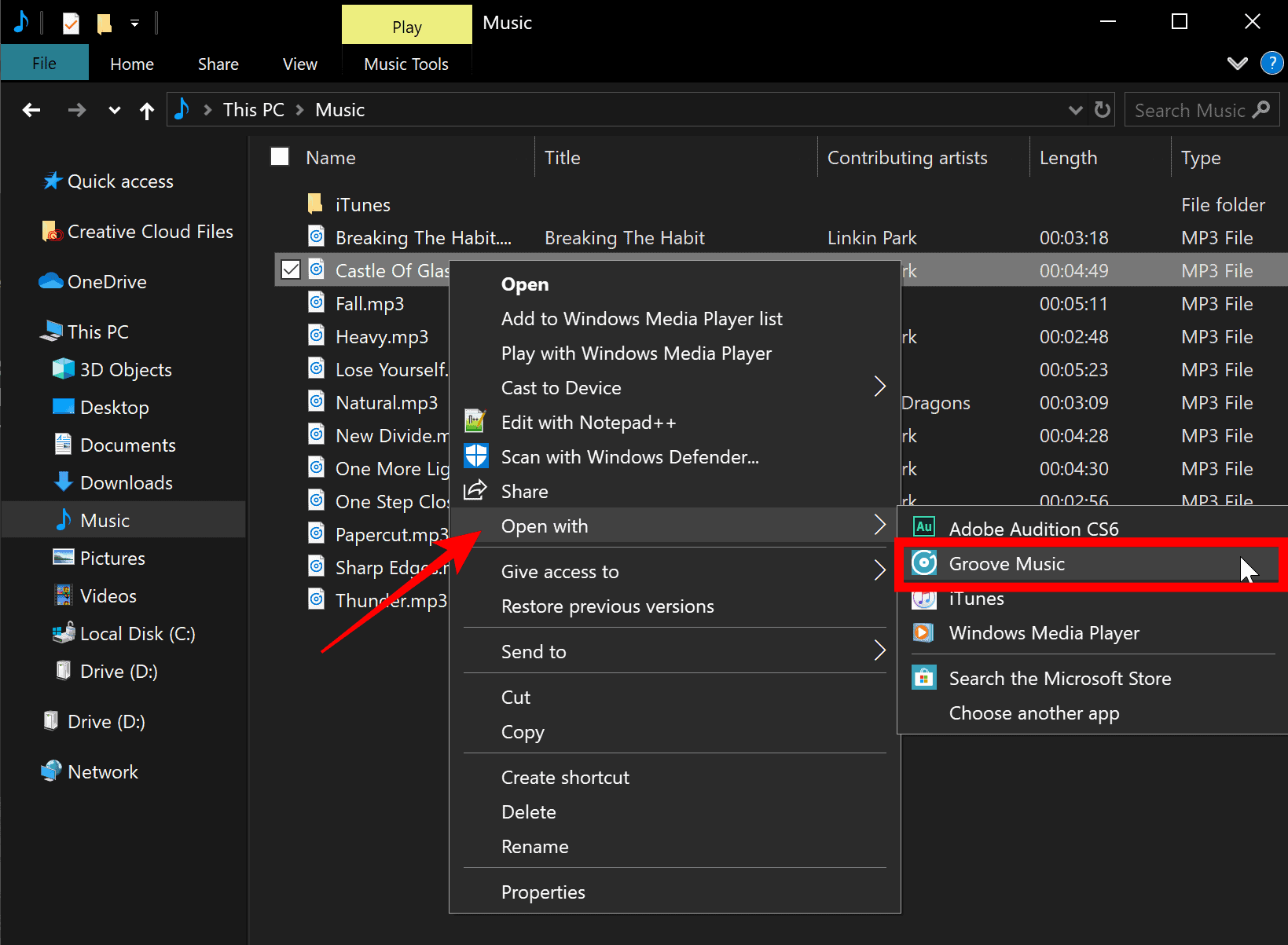 Now, you need to use a media player to go through the music so that you can play your songs while sorting through them. The default music player on Windows 10 is Groove Music. It is very convenient to use, but you can also use another media player like Windows Media Player.