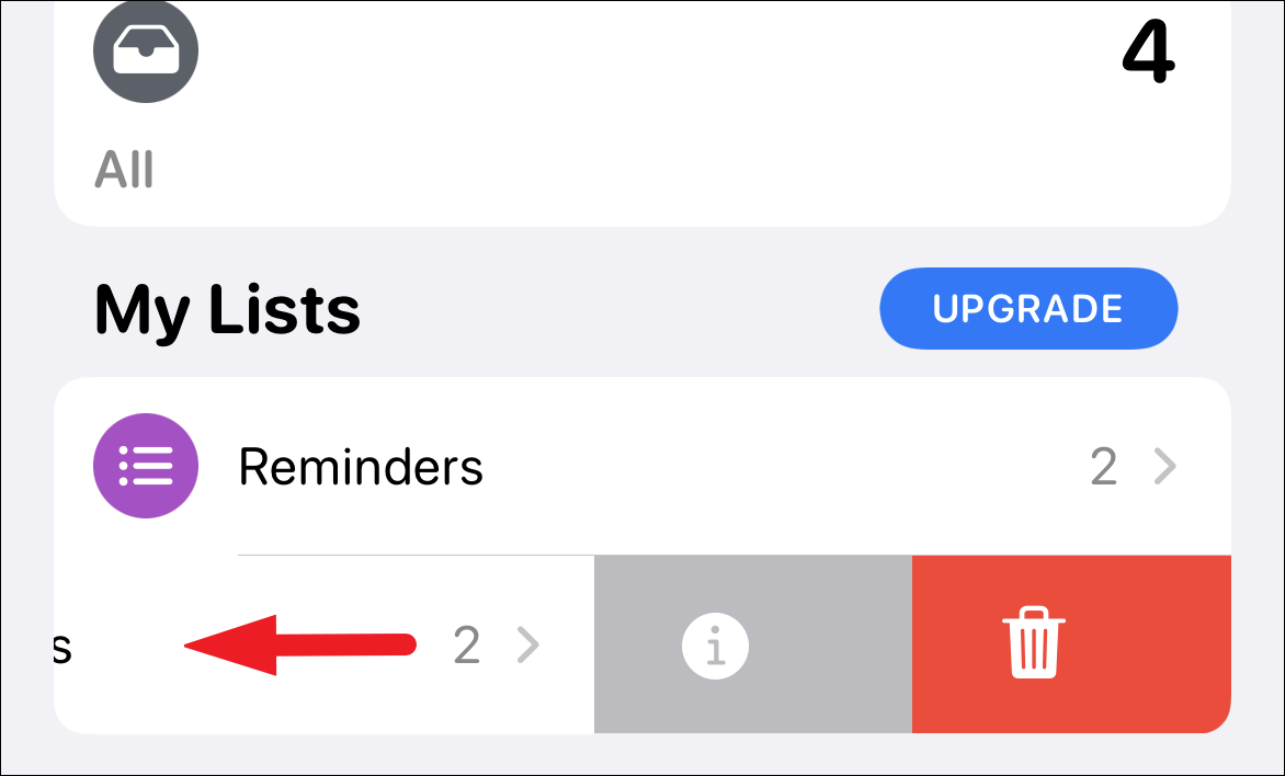 If there’s a specific reminder which you no longer need or a specific list of reminders that no longer serve the purpose, you can quickly delete it from the Reminders app with a single swipe.