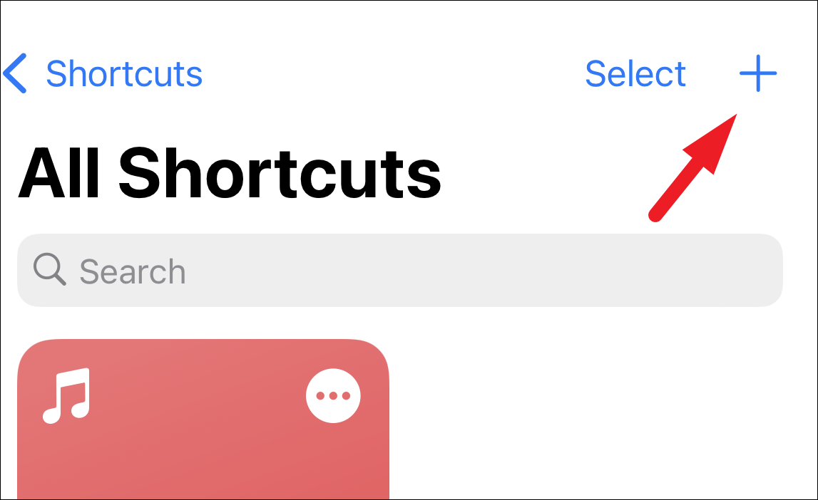 Next, tap on the ‘+’ button present at the top right corner of the ‘Shortcuts’ app screen.
