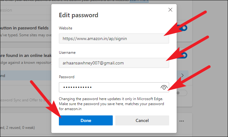 If you recently updated a password on any other device(s)/browser(s), you can edit the respective saved password on Microsoft Edge in a jiffy.