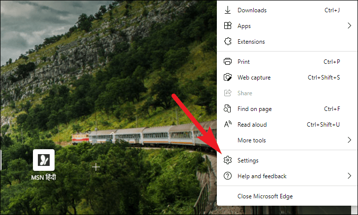 Now, locate and click the ‘Settings’ option from the overlay menu. This will open a new ‘Settings’ tab on the browser.