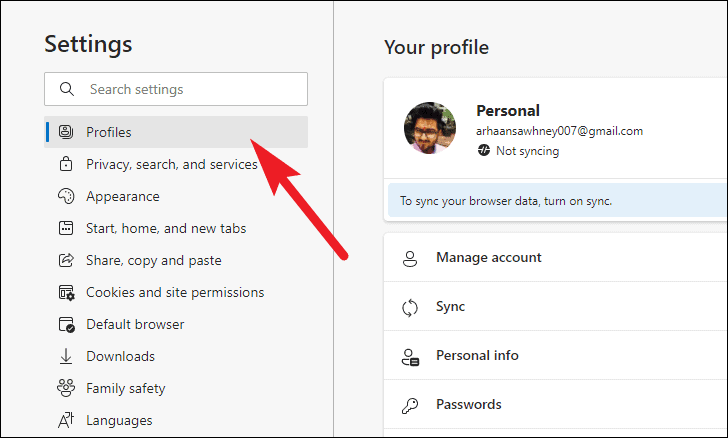 Now, click the ‘Profiles’ tab from the left sidebar of the ‘Settings’ page.