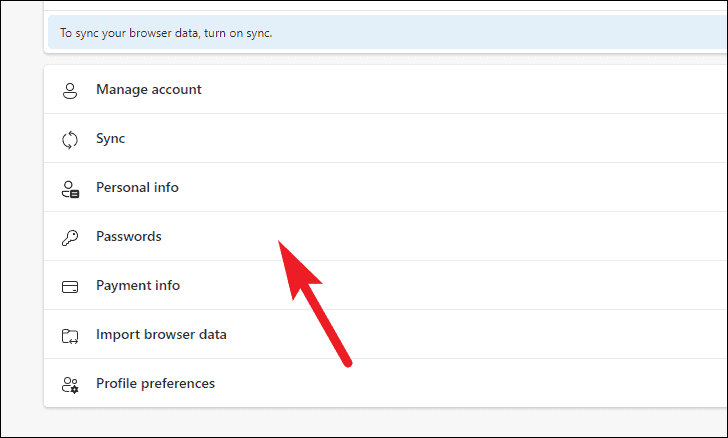 Select the ‘Passwords’ option under the ‘Your profile’ section.