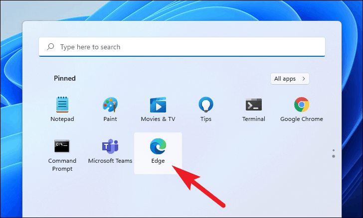 First, launch Microsoft Edge from the Start Menu, your taskbar, or the desktop of your Windows computer.